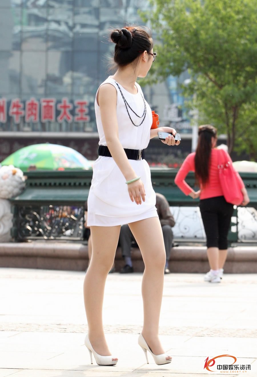 匯豪廣場(chǎng)街拍的白裙墨鏡美女