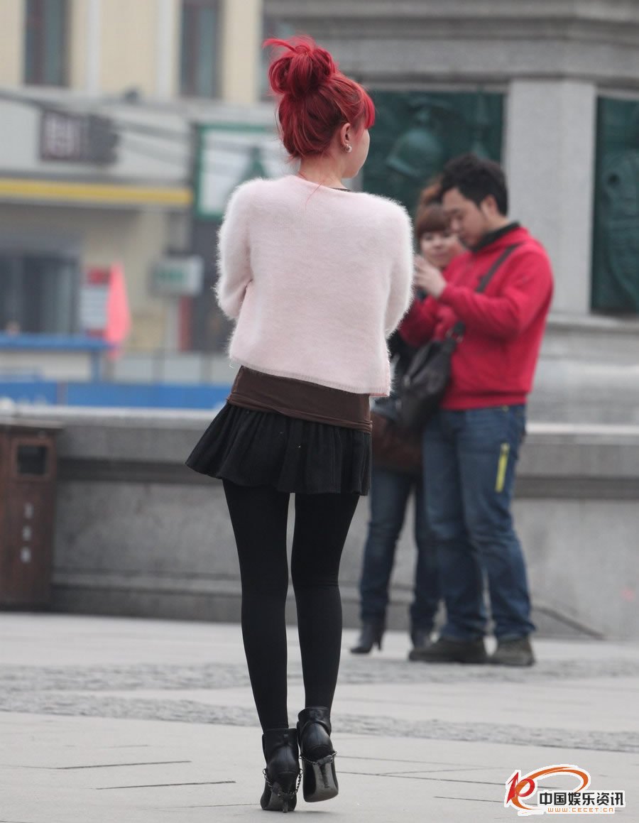 街拍的蓬松短裙黑絲紅發(fā)妹妹