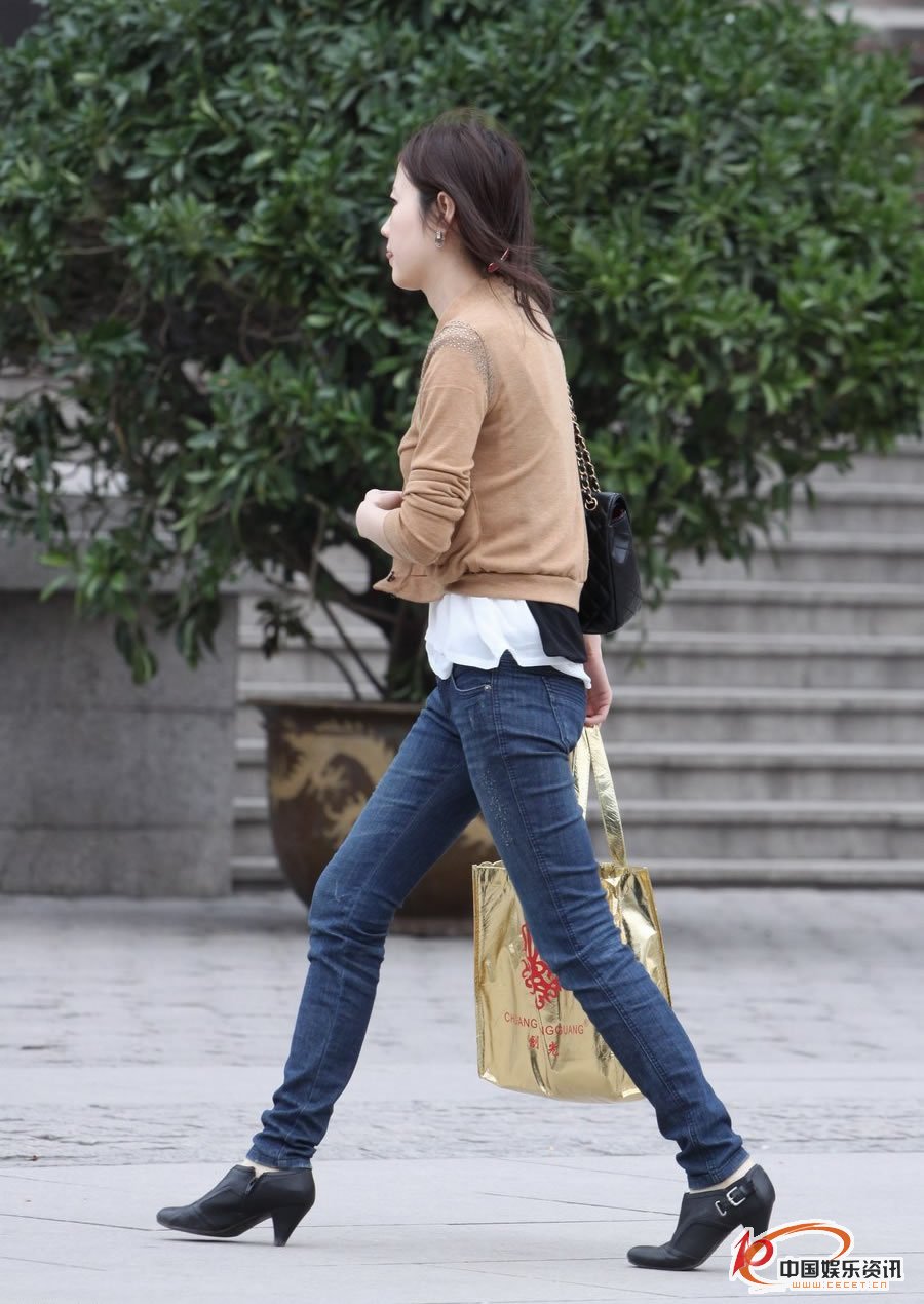 幸福西街抓拍的緊身牛仔褲美女