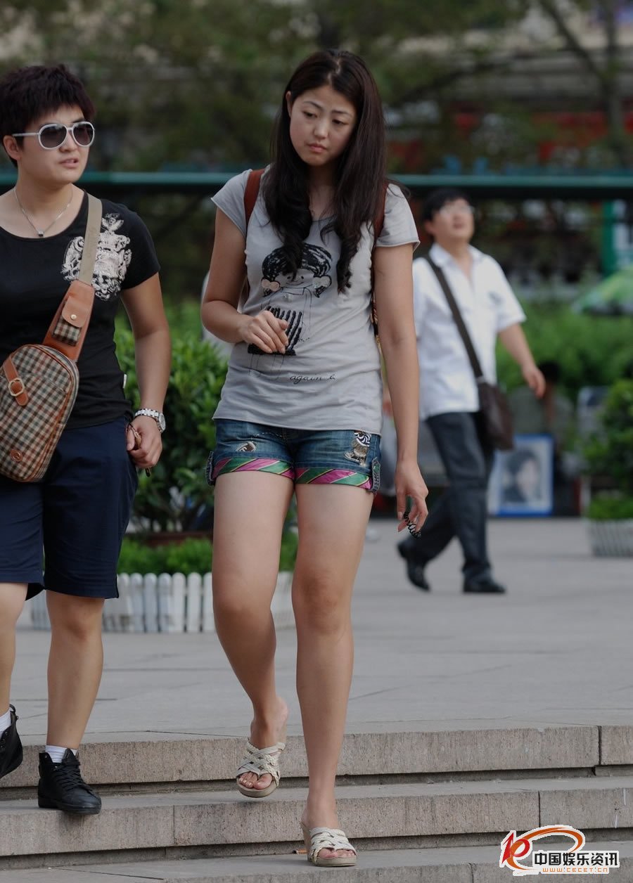 街拍的緊身熱褲圓潤大腿美女