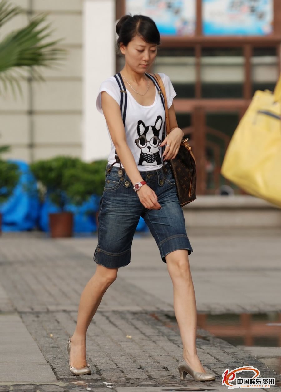 街拍的吊帶牛仔氣質(zhì)白領(lǐng)美女