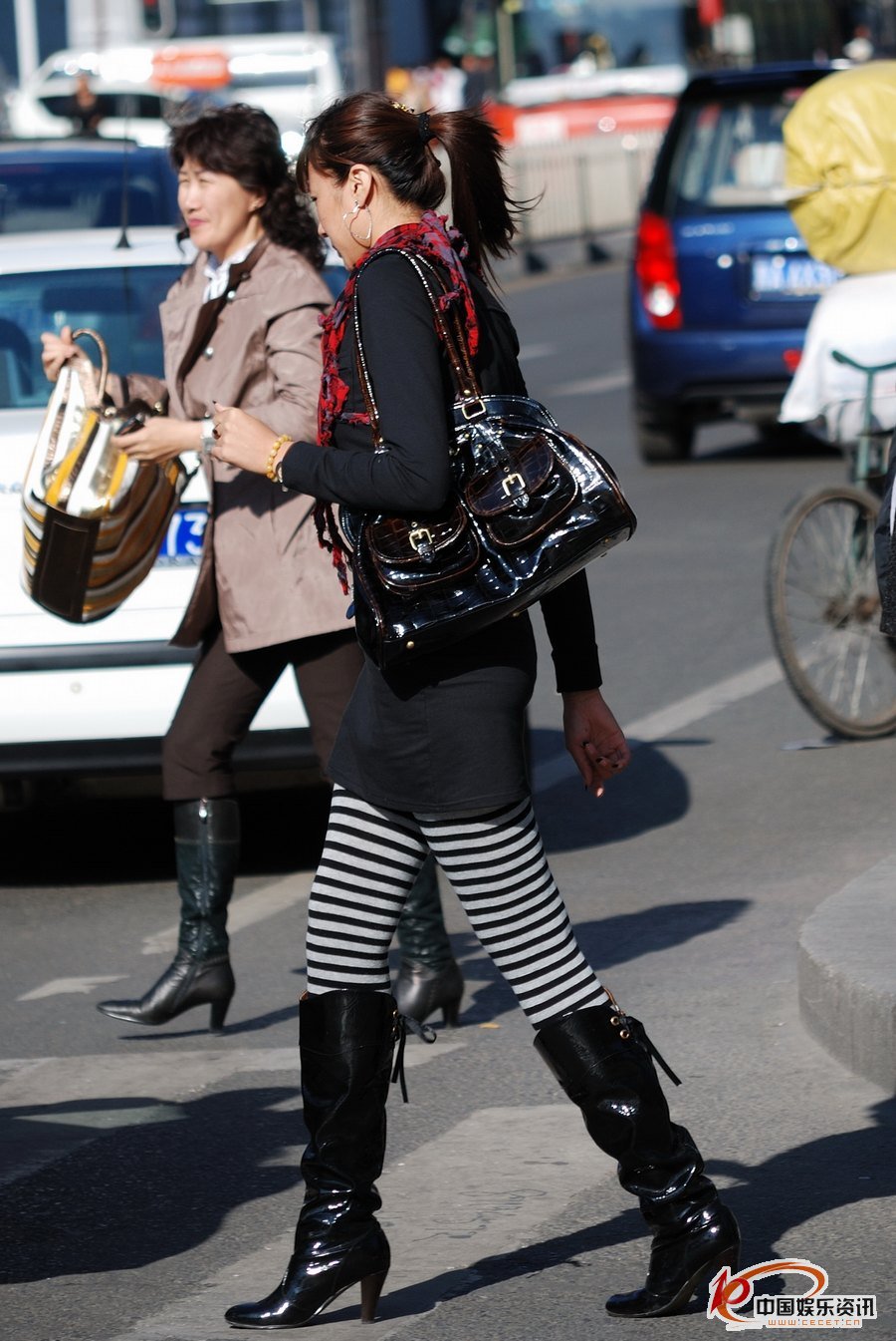 街拍的漆皮長(cháng)靴氣質(zhì)高個(gè)美少婦