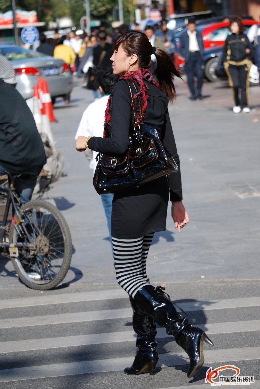 街拍的漆皮長(cháng)靴氣質(zhì)高個(gè)美少婦