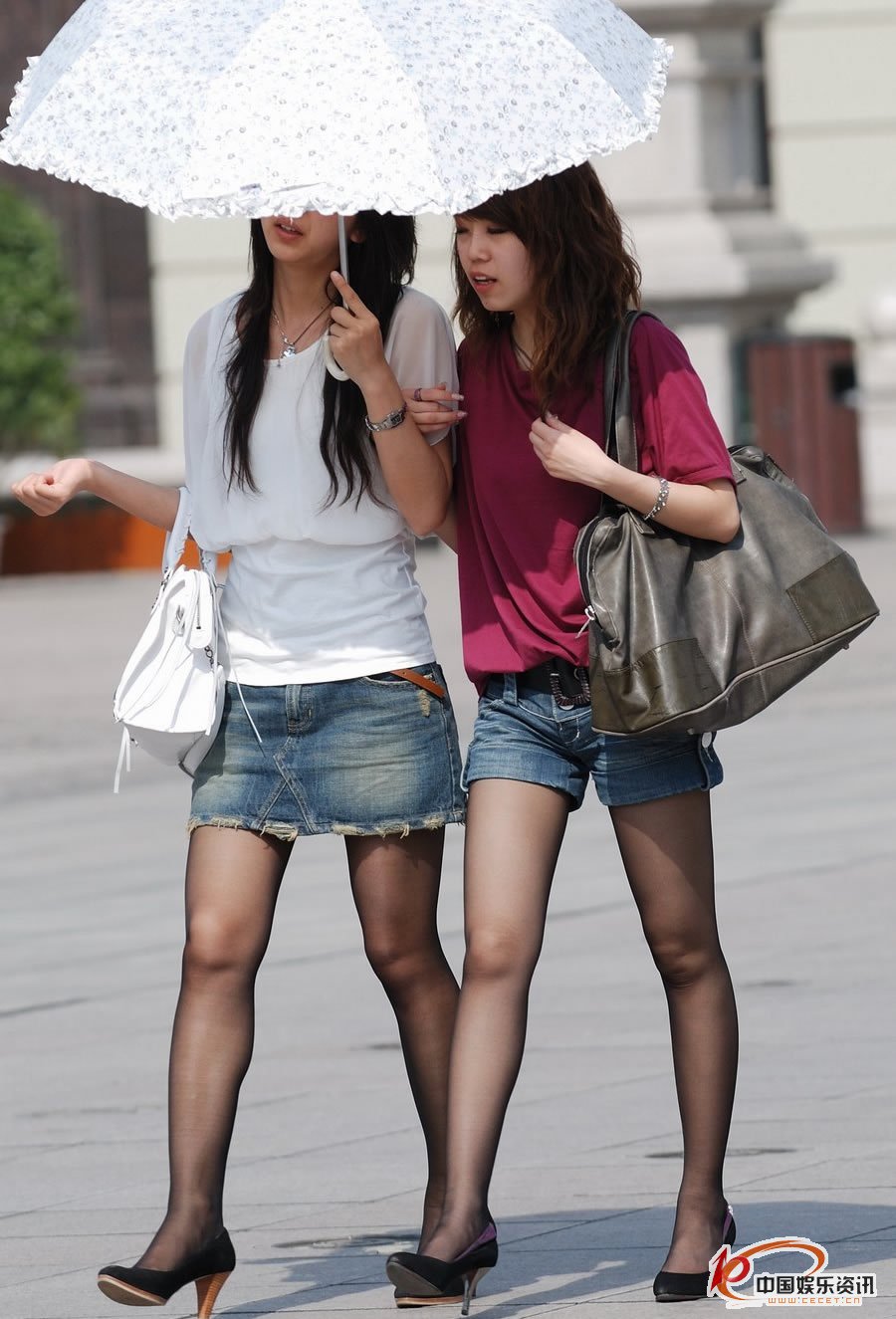 遮陽(yáng)傘下的兩個(gè)黑絲美腿妹妹