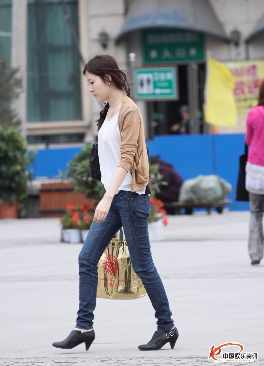長(cháng)興西路街拍的藍色牛仔褲美女