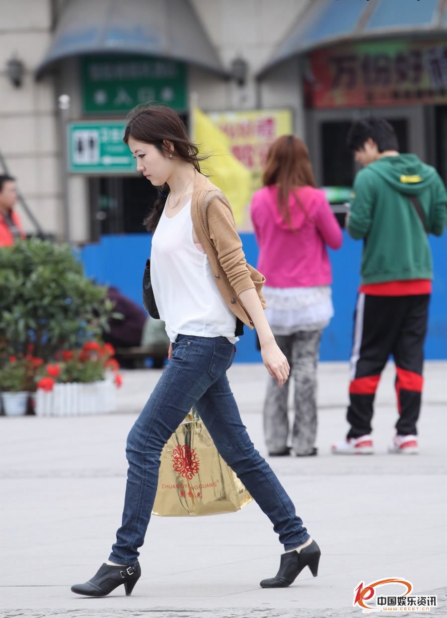 長(cháng)興西路街拍的藍色牛仔褲美女