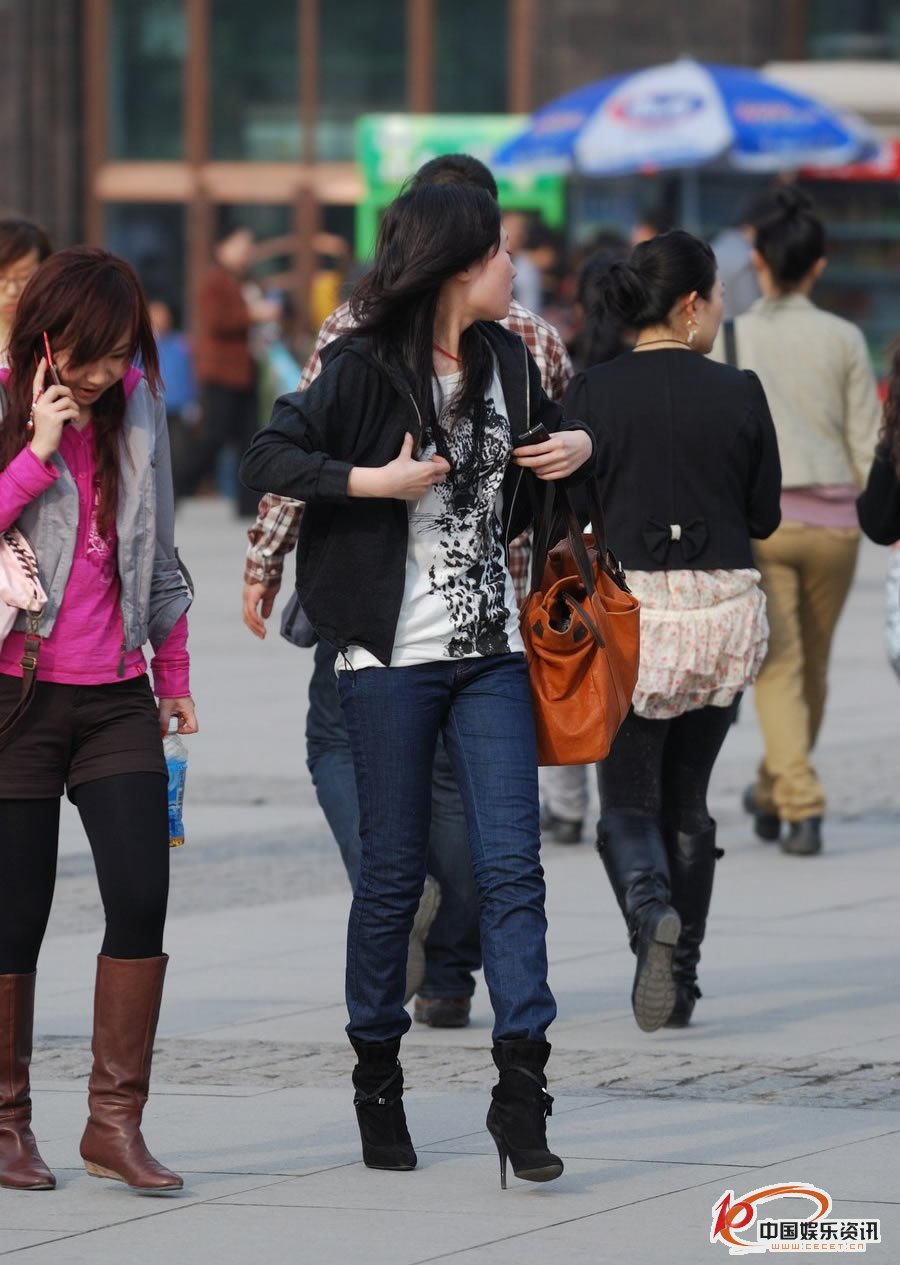 勝利廣場(chǎng)街拍的藍色牛仔褲美女