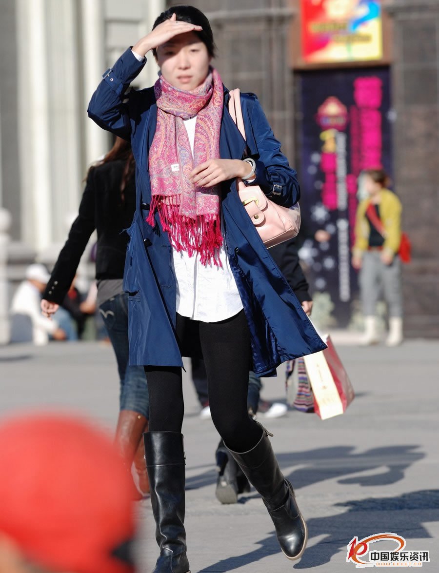 街拍的厚黑褲襪風(fēng)衣長(cháng)靴美女