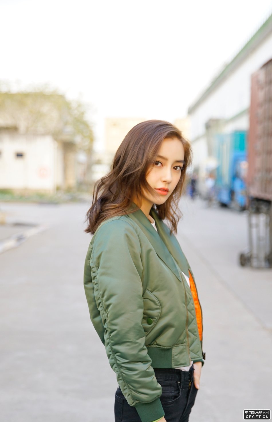 Angelababy秋冬街拍 白T外搭軍綠飛行服夾克