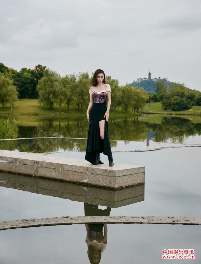 Angelababy湖畔秀身材 抹胸禮裙露精致鎖骨