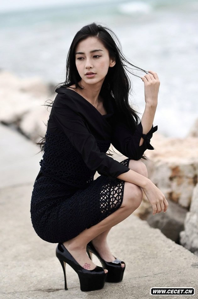 Angelababy黑裙拍寫(xiě)真 黑色高跟鞋搶眼