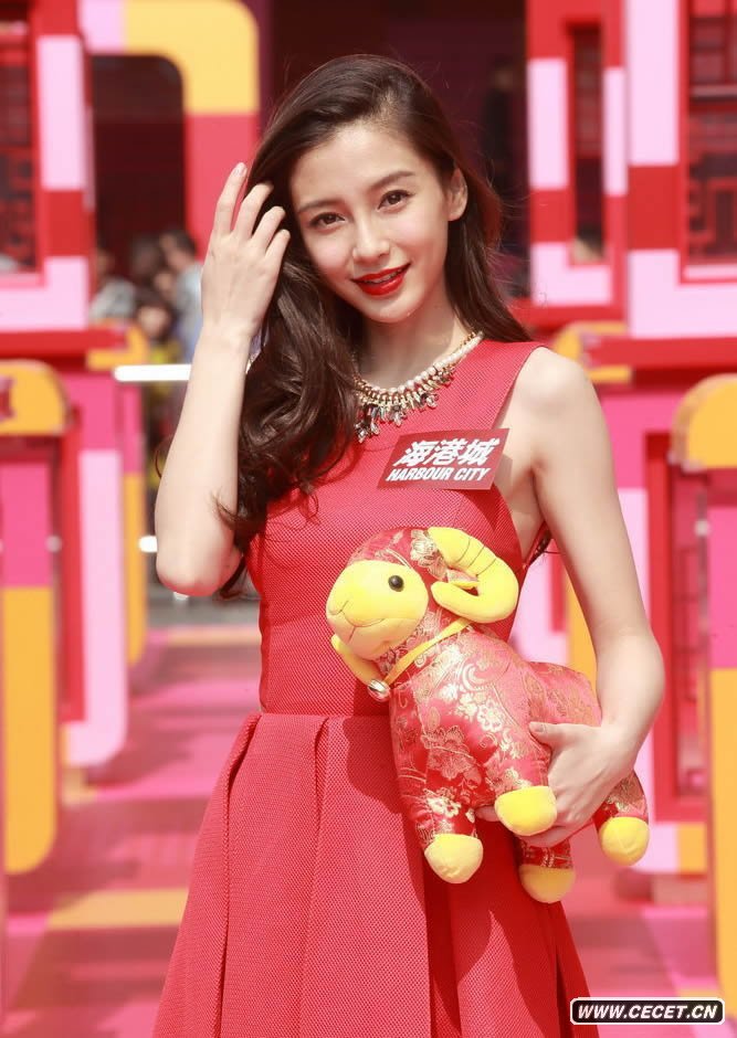 Angelababy紅裙露蠻腰現身香港 過(guò)年陪黃曉明