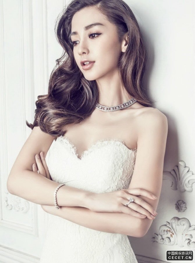 Angelababy拍攝時(shí)尚大片 抹胸長(cháng)裙露香肩