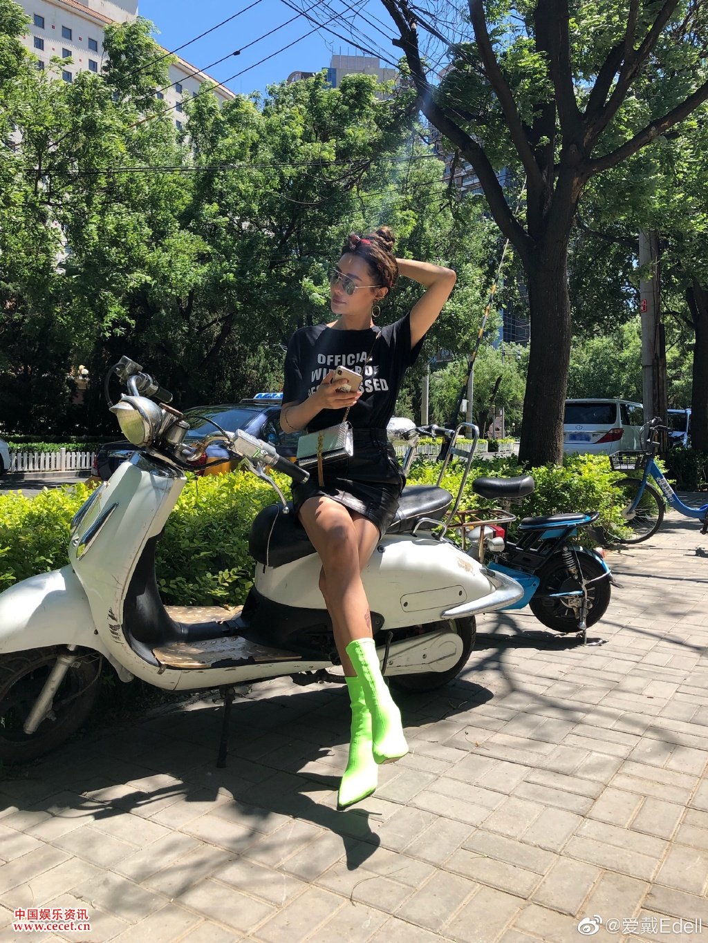 愛(ài)戴緊身皮褲酷帥美照 一雙大長(cháng)腿非常搶眼