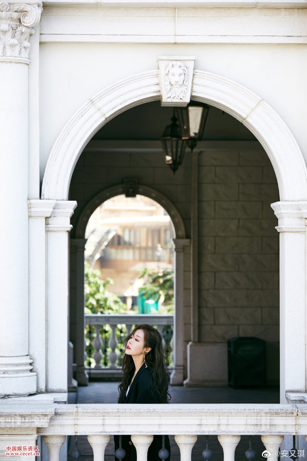 安又琪黑外套又酷又美 頭發(fā)凌亂隨性大方
