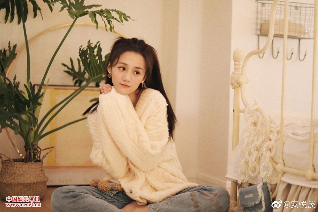 安悅溪休閑風(fēng)格穿搭照 雙馬尾造型閃閃惹人愛(ài)