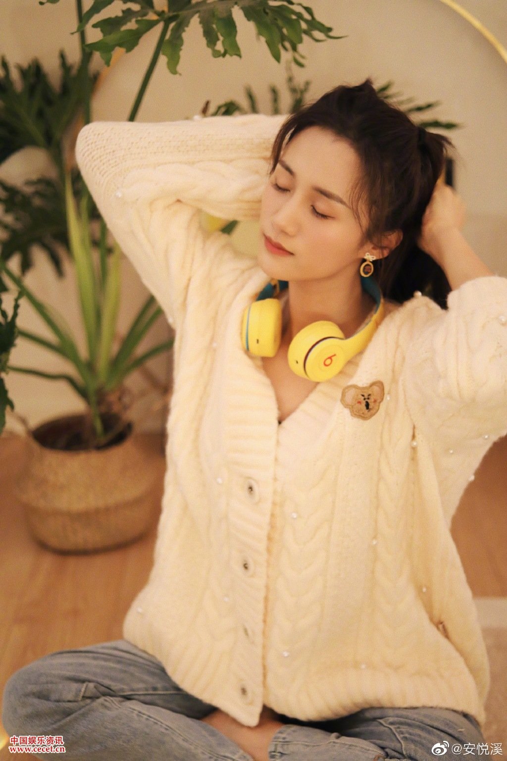 安悅溪休閑風(fēng)格穿搭照 雙馬尾造型閃閃惹人愛(ài)