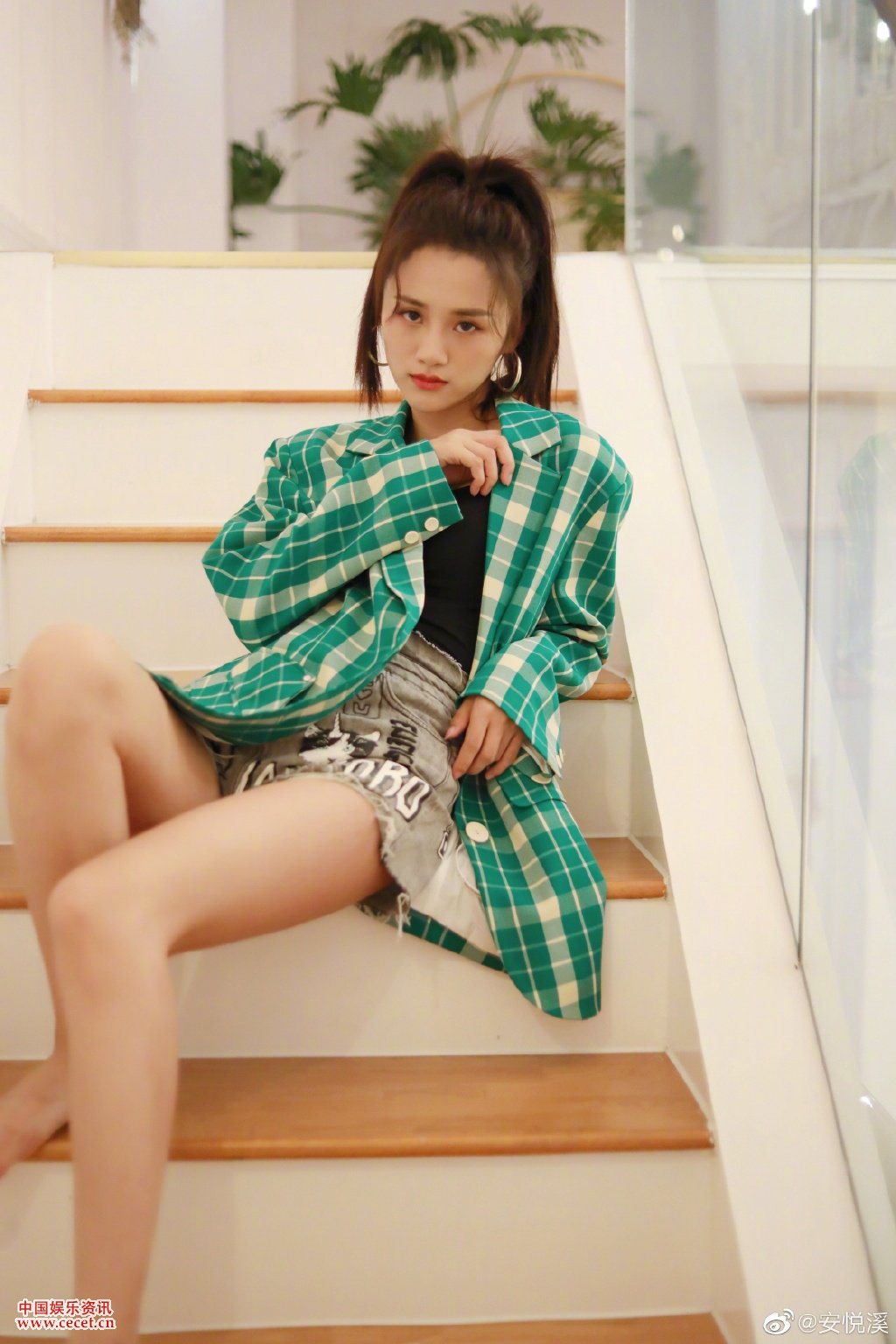 安悅溪綠白潮裝高馬尾出街 活力少女感十足
