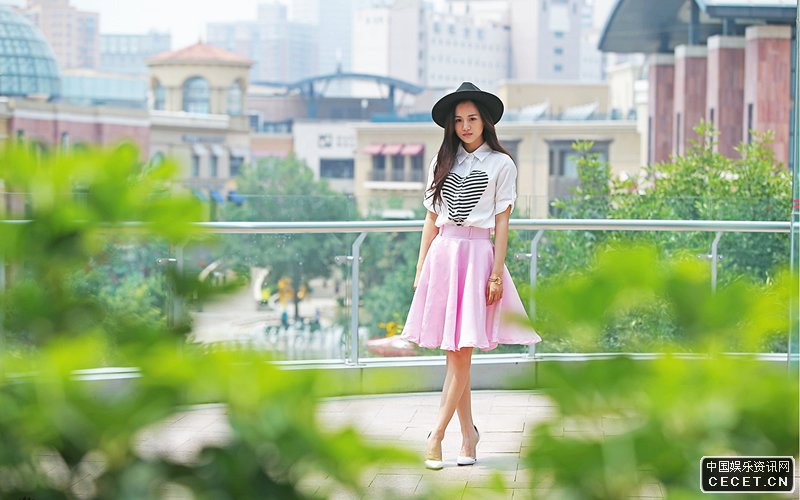 安悅溪粉色短裙街拍 妝容淡雅盡顯清新少女風(fēng)