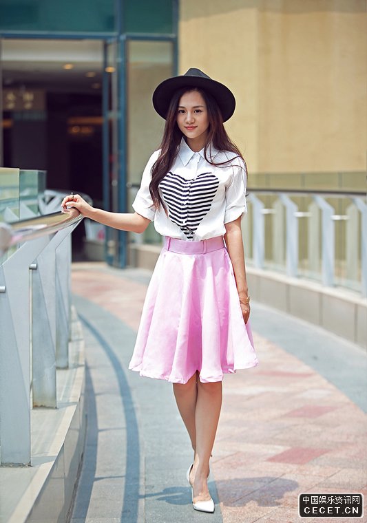 安悅溪粉色短裙街拍 妝容淡雅盡顯清新少女風(fēng)