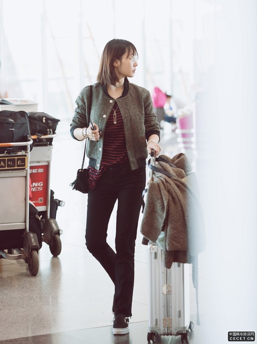 白百何現身北京機場(chǎng) 素顏圓眼鏡隨性又呆萌