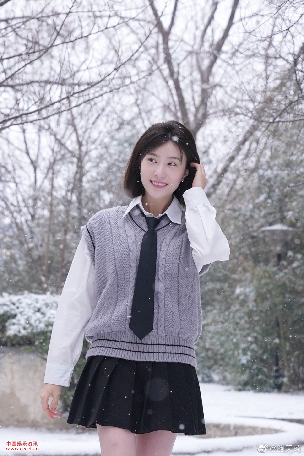 鮑天琦雪地里短裙亮相 電影的氛圍感十足