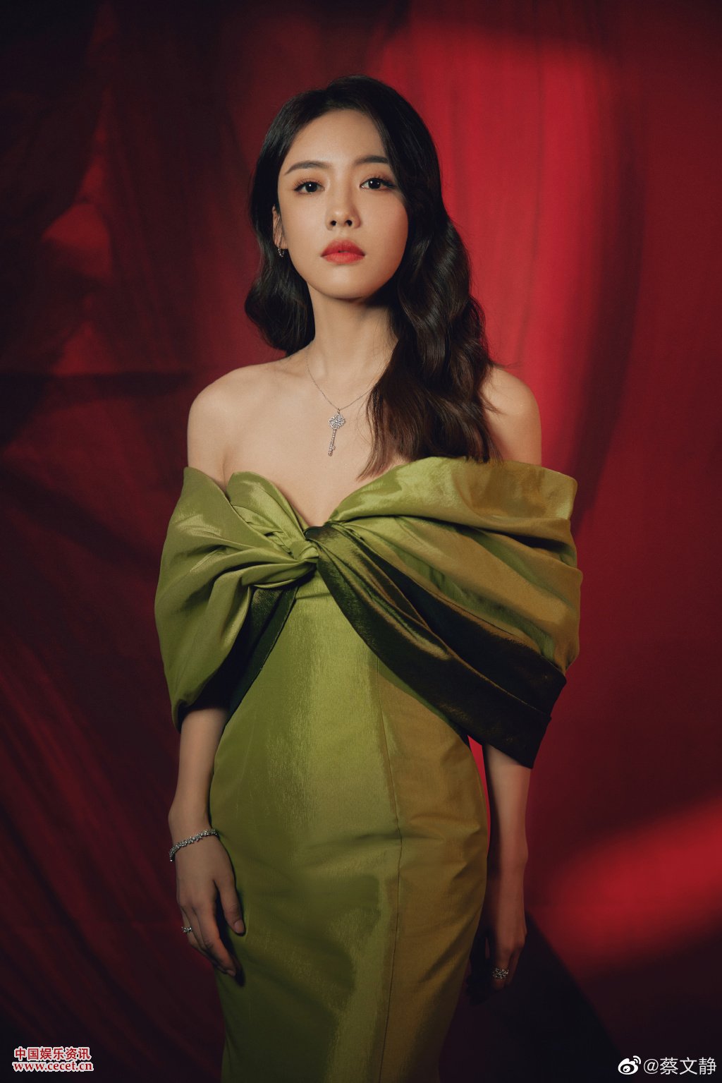 蔡文靜低胸禮服美艷照 紅綠配令人溫婉迷人