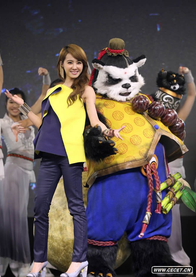蔡依林出席活動(dòng)秀身材 與熊貓合影笑尷尬