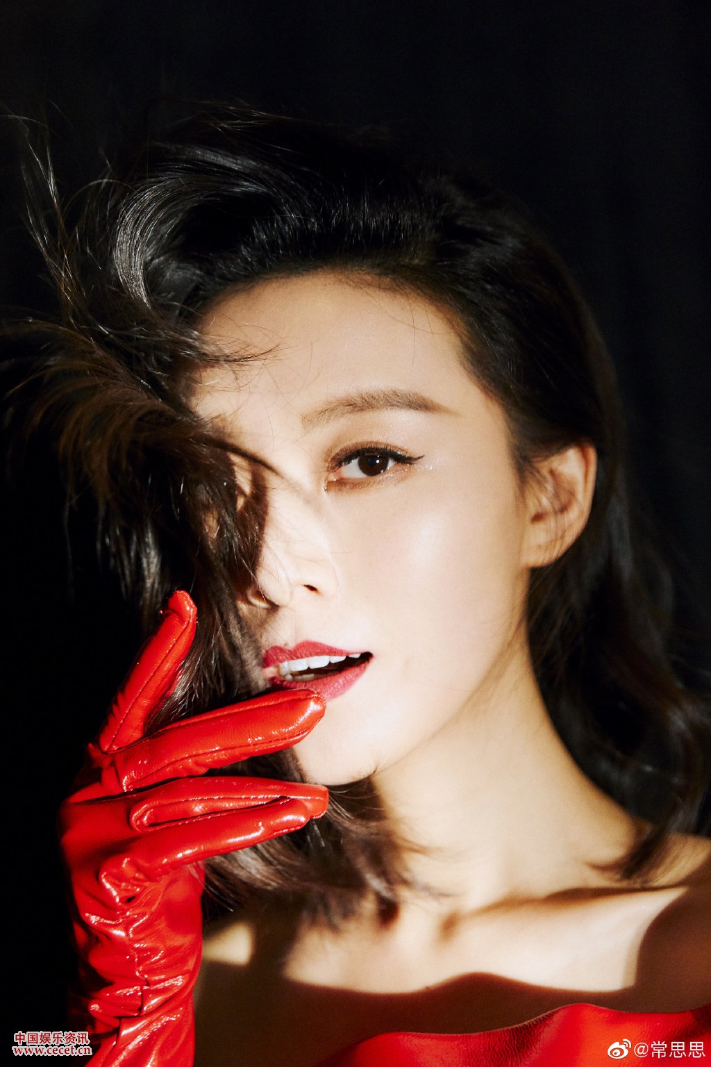 常思思大紅皮禮服亮相 御姐形象魅力十足