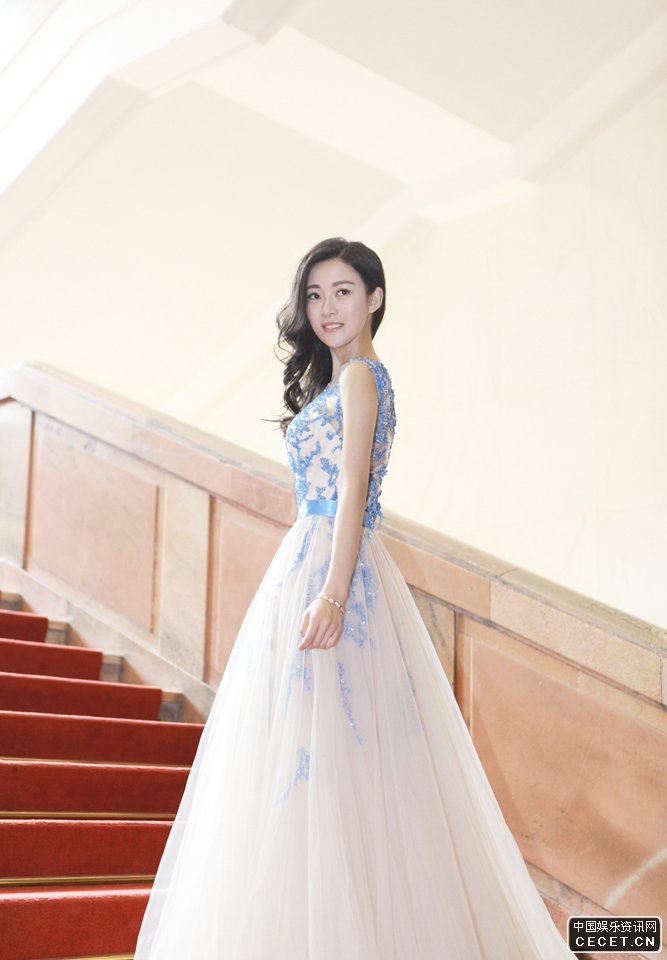 常思思身著(zhù)蕾絲禮服裙 清新又略帶復古味道