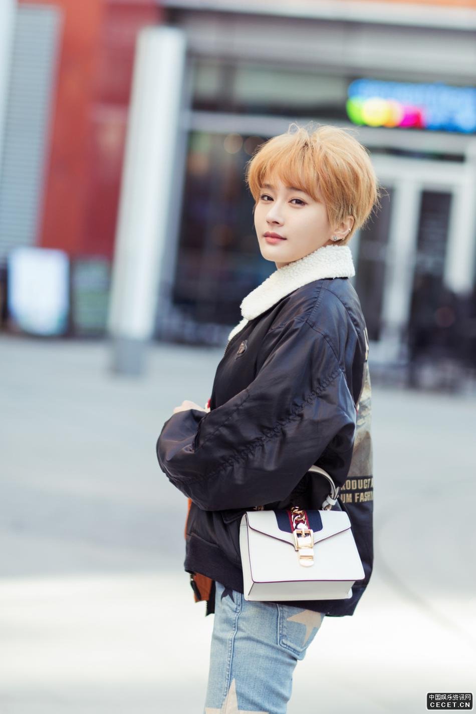 陳冰短發(fā)造型亮相 淺藍仔褲搭配露踝低跟靴