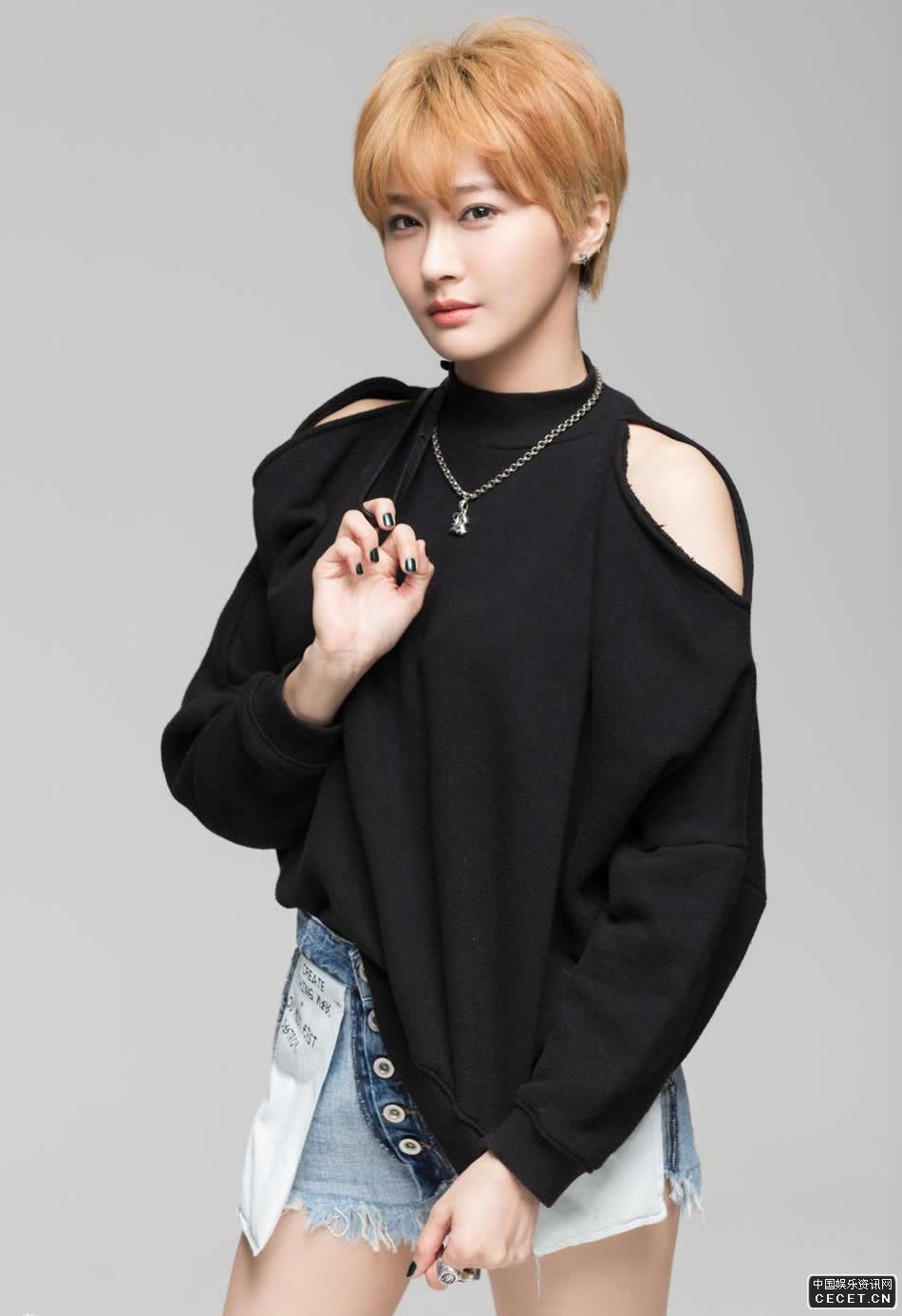 陳冰黑色衛衣小露香肩 帥氣演繹早春新時(shí)尚