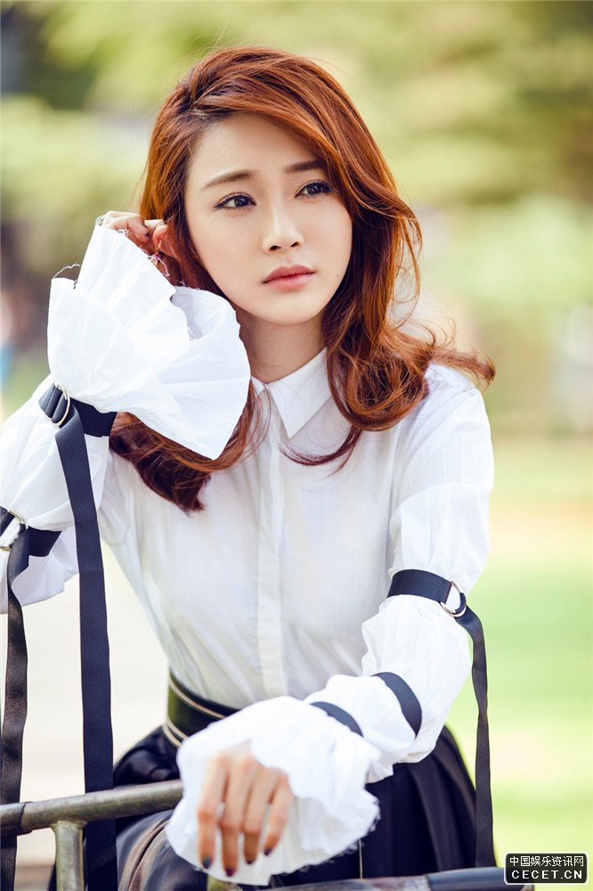 陳冰秋日寫(xiě)真清純靈動(dòng) 一襲白襯衫加黑色長(cháng)裙