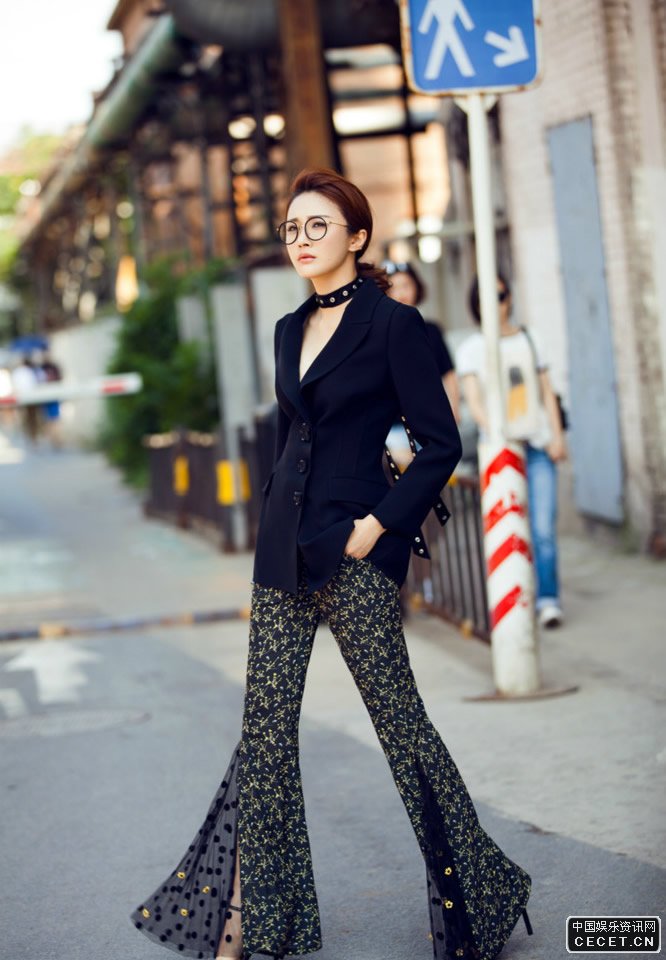 陳冰喇叭口長(cháng)褲街拍 能將長(cháng)腿利器完美展現