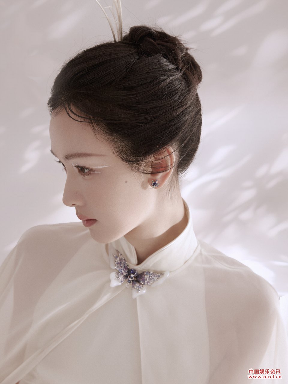 陳都靈白紗落尾羽清姿化孔雀 一瞬抬眸入畫(huà)成角