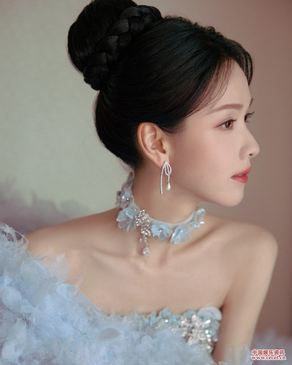 陳都靈披冰藍葉羽著(zhù)繁花裙袂 點(diǎn)點(diǎn)星光隨行綻開(kāi)