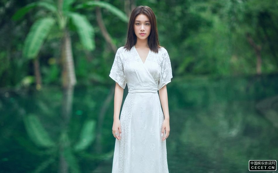 程硯秋長(cháng)裙自然大片 肌膚剔透如雪仙氣十足
