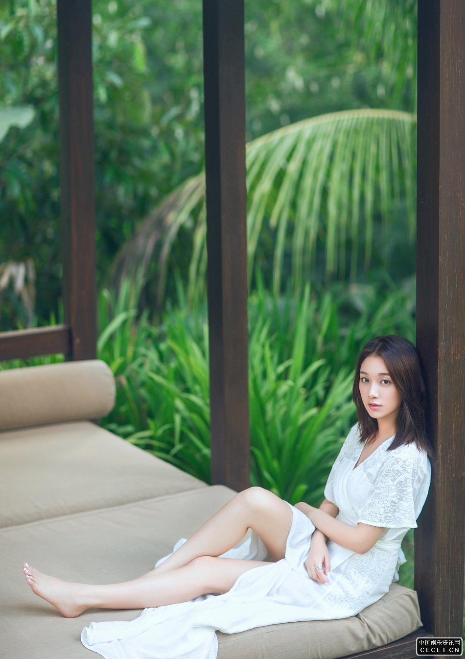 程硯秋長(cháng)裙自然大片 肌膚剔透如雪仙氣十足