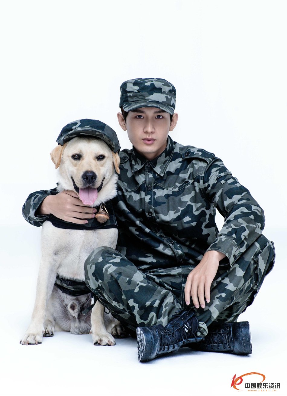 成毅迷彩軍裝酷帥有型 與拉布拉多一同出鏡