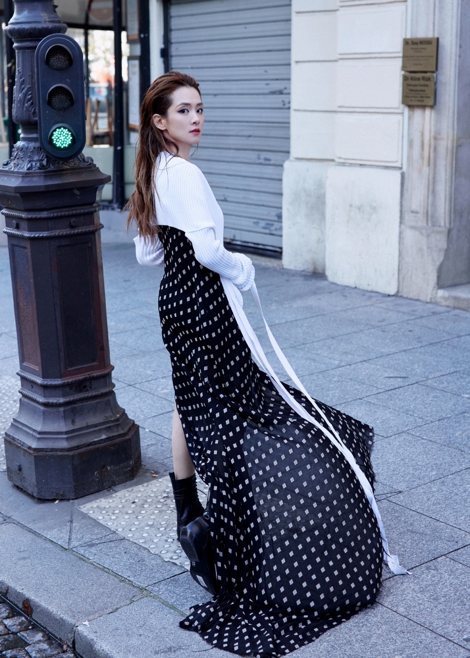陳昊宇背頭長(cháng)裙造型 巴黎街頭捕捉肆意綻放