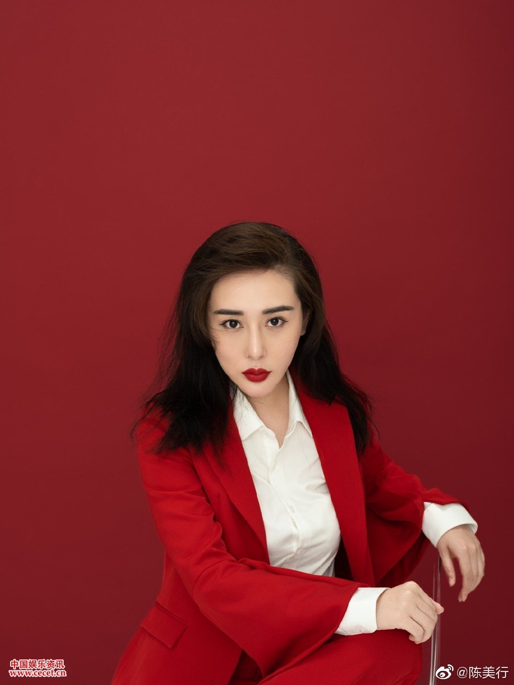 陳美行大紅套裝寫(xiě)真 女神的魅力氣場(chǎng)十足