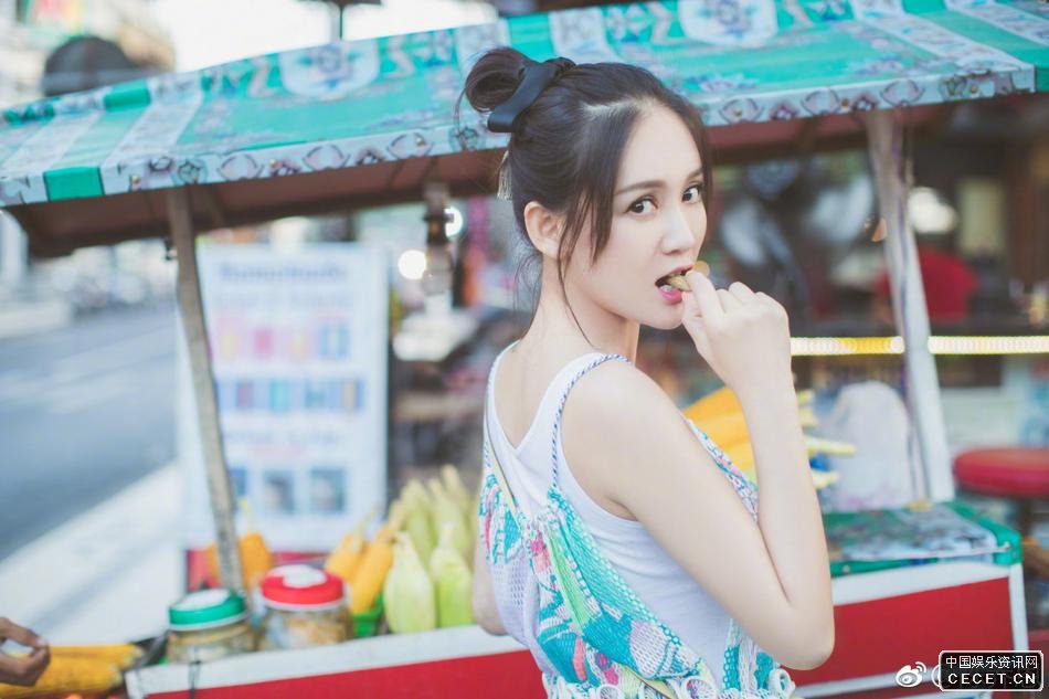 陳喬恩夏日隨手街拍照 丸子頭造型清新可愛(ài)