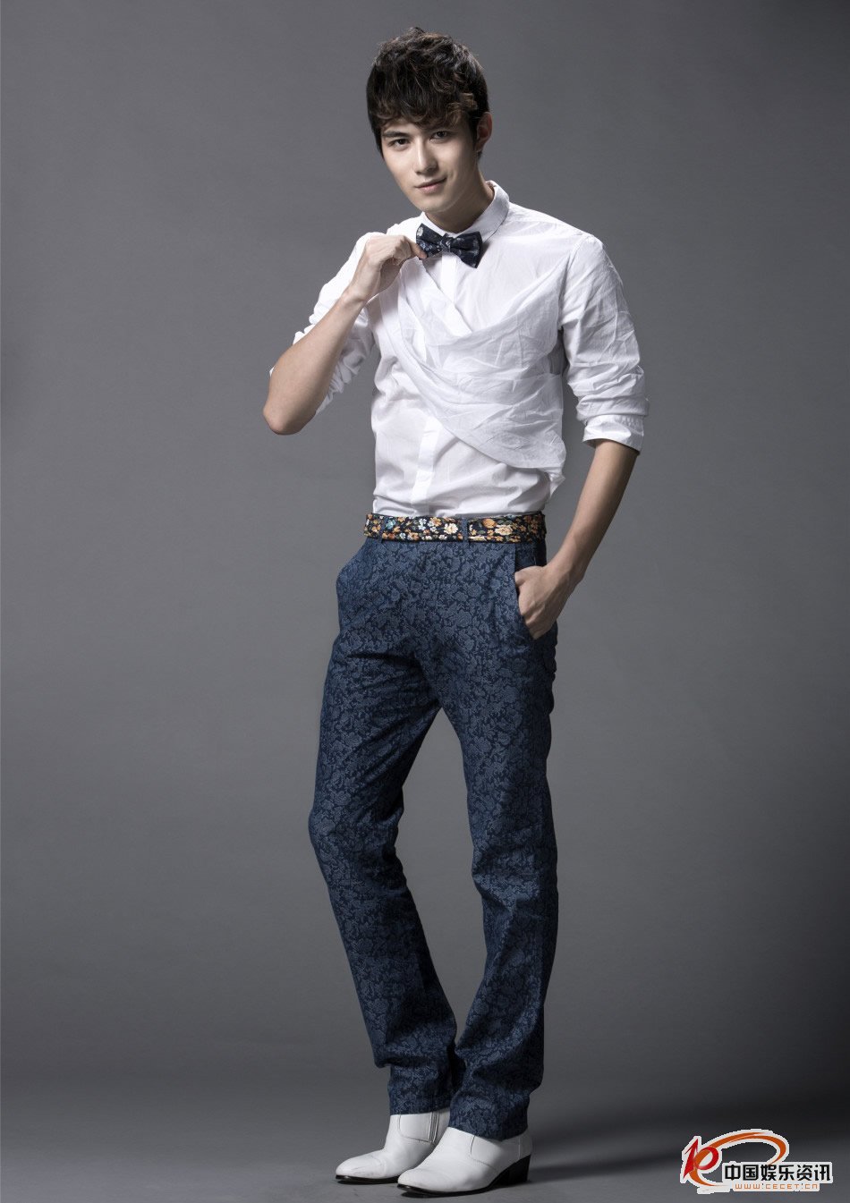 陳學(xué)冬清新寫(xiě)真 白襯衣和碎花領(lǐng)結造型明朗