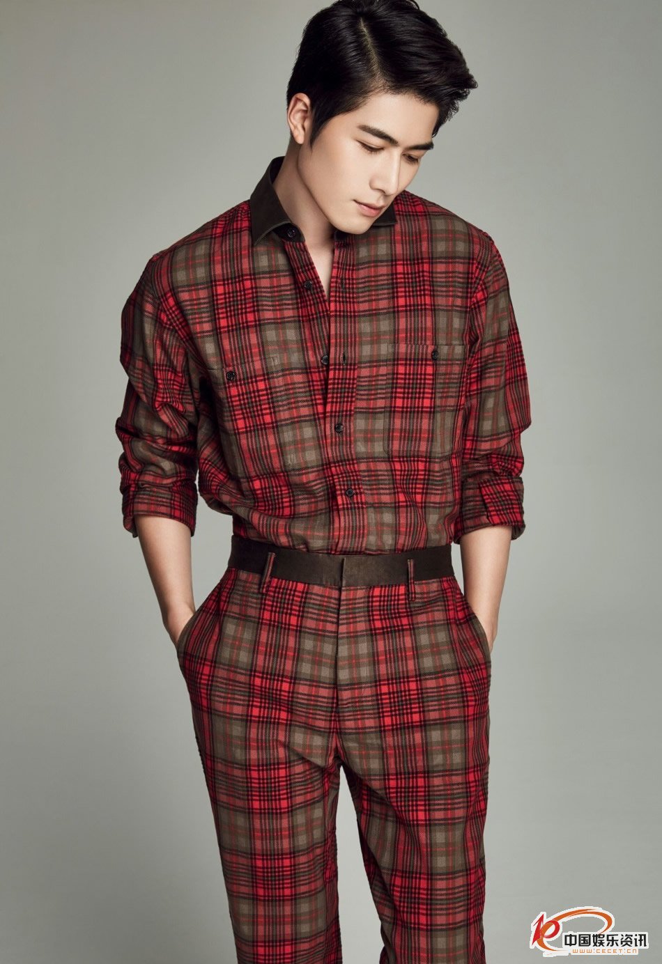 陳學(xué)冬紅格連衣褲寫(xiě)真 不茍言笑堪稱(chēng)完美側顏殺