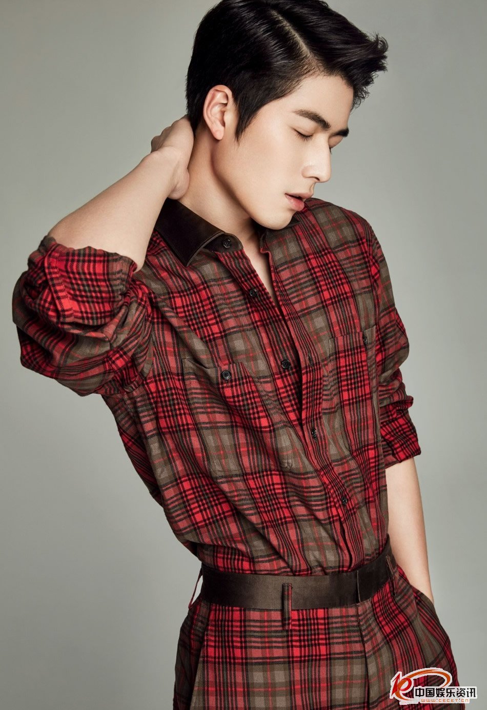 陳學(xué)冬紅格連衣褲寫(xiě)真 不茍言笑堪稱(chēng)完美側顏殺