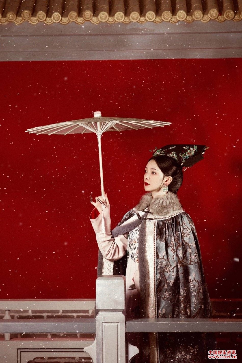 陳瑤冬日紅墻清宮大片 一襲披風(fēng)綢緞變身古裝美人
