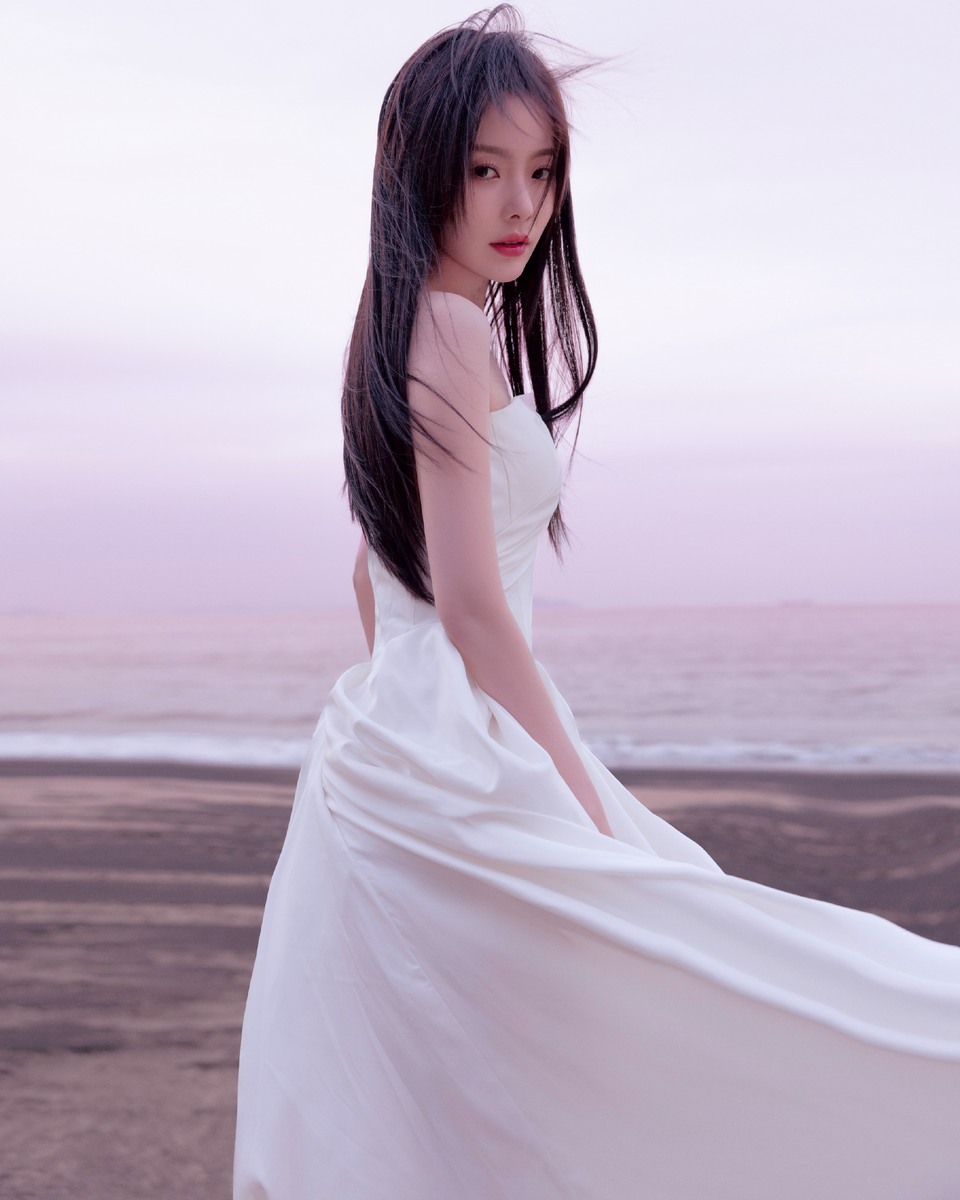 陳卓璇海邊落跑少女 身著(zhù)純白長(cháng)裙于沙灘翩翩起舞