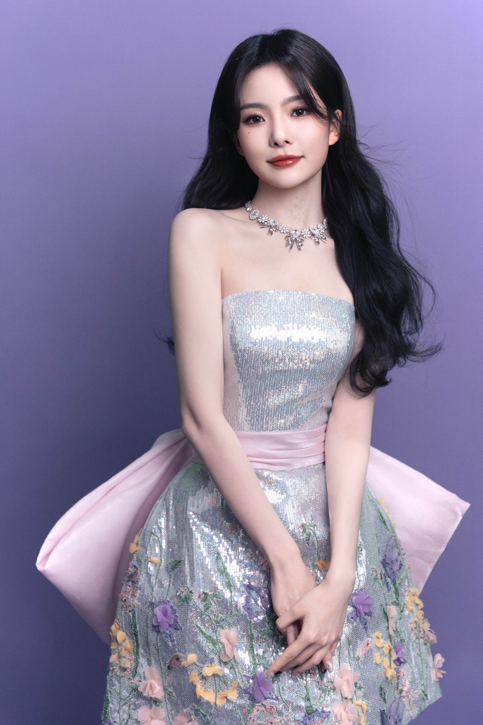陳卓璇緞帶蝴蝶結搭配銀閃禮裙 刺繡花朵點(diǎn)綴裙擺