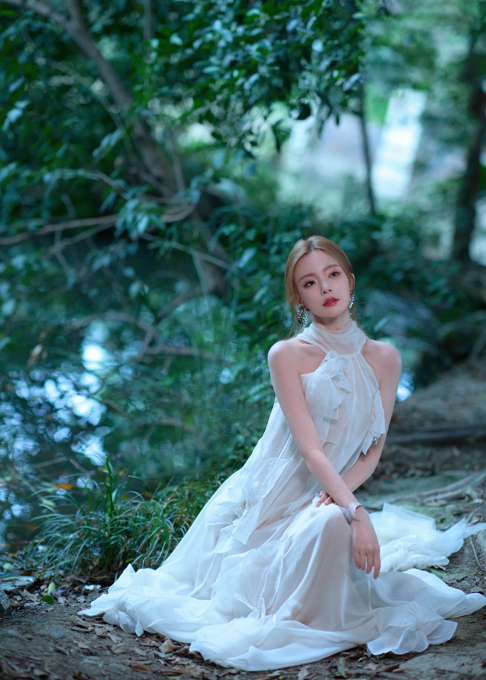 陳卓璇一襲白色紗裙如夢(mèng)似幻 層疊花開(kāi)綴于裙身