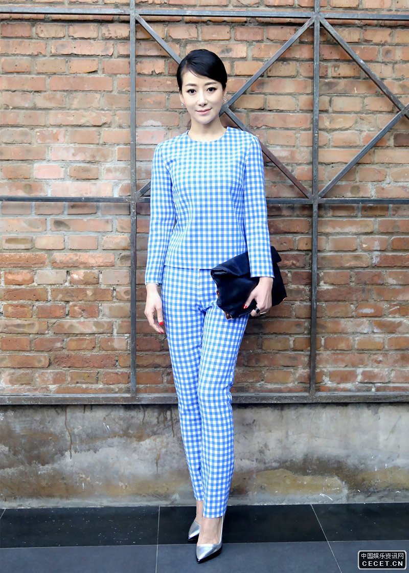 陳紫函服裝節看秀街拍 藍白格子褲裝亮相